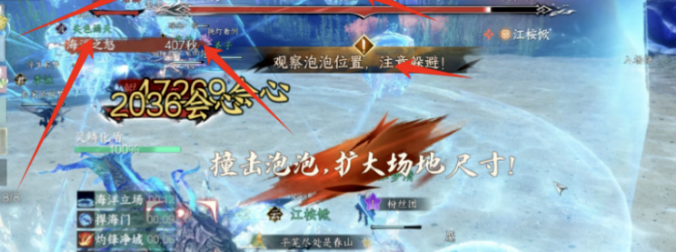 老三【水下缺氧】战场会随时刻缩小,需主动跳跃撞击携带"海洋立场"buff时生成的小气泡来扩大场地(气泡落地则失效)。海马时间建议等其落地或涌水来袭时处理,其余原有机制不变,整体难度适中。