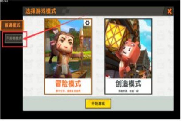 创建新世界后,打开游戏页面后点击【开发者模式】,然后正在右侧点击【启动创作】。