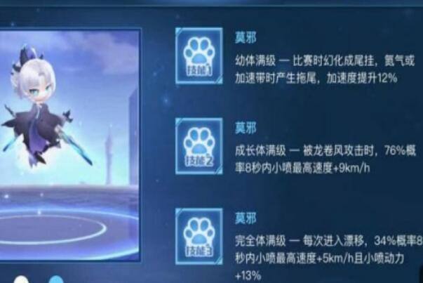 排方才方才第6位的是:莫邪。这是个新宠物,外形就不用多说了十分能够以爱。它还增加了小喷,这个成效格外符合喜欢竞速的玩家。