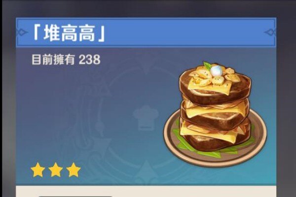 另外,还有部分其他的工艺能够获得堆高高食谱,比如抽取祈愿,然而这种技术比较依赖运气,并且消耗的代价比较大,不太推荐新手玩家访问。