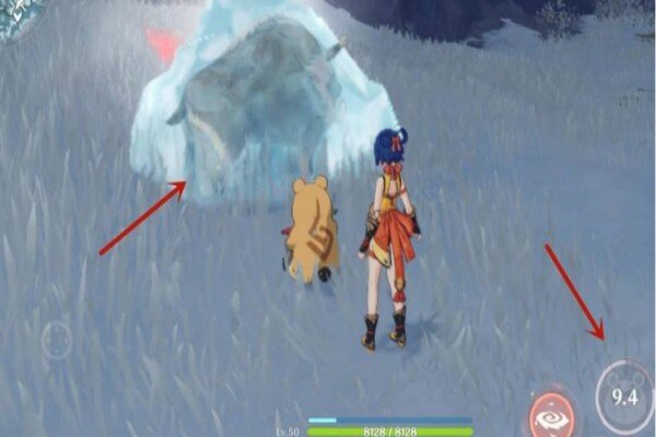 其次,我们要找到冰冻野猪的刷新位置,它们通常出现正正在正雪山海边附近,被冰块或者冰柱封住。我们能够以根据地图上的标记或者空中的光芒来判断位置。目前已经知的刷新位置有两处,一处是在神像处向后转直接飞行的方向,一处是在最右侧的传送点向右跑过去的方向。