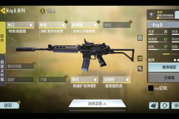 使命召唤手游中的Krig 6是一把比较常用的步枪,很多玩家都会选择它来进行游戏,那么该如何进行配件搭配呢?下面就为大家详细推荐Krig 6的配件。