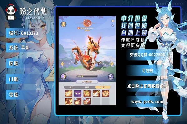 “长安幻想”是一款备受瞩目的古风仙侠手游,玩家能够刚刚游戏中体验到古代仙侠情缘、剑斗江湖的刺激体验。而想要在游戏中立足,一个好的账号交易平台是必不能少的。我强烈力荐“盼之代售”这家游戏交易框架,它拥有最丰富的长安幻想账号资源、安一切快捷的交易过程和优质的售后产品。