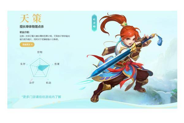 物理输出门派:万兽、天策、天宫。物理输出门派的特点是攻击力较高,适合追求高速高伤害的玩家。正正团队副本和PVP中,物理输出门派能够够够快速消灭敌人。然而,这种门派的生存效果较弱,务必装备和技术优秀。鉴于此,在操作时需要时间注意自身的生命值和状态,以免被敌人秒杀。