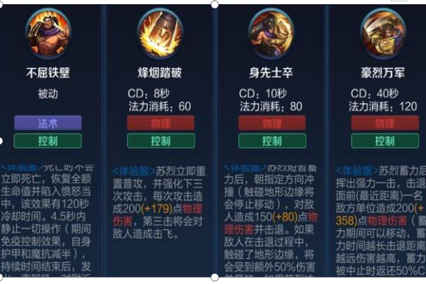 1技术的释放会强化苏烈的普通攻击,正在第三次的普通攻击会把攻击目标击飞,这个方法的冷不过时间很短,而且这个科技够的最主要的能够力就是第三下的击飞控制功能。