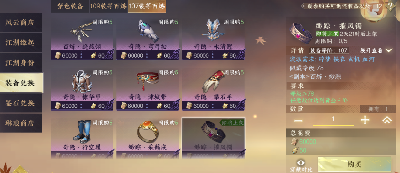 1)集市-装备兑换-107PVE百炼装备起步兑换