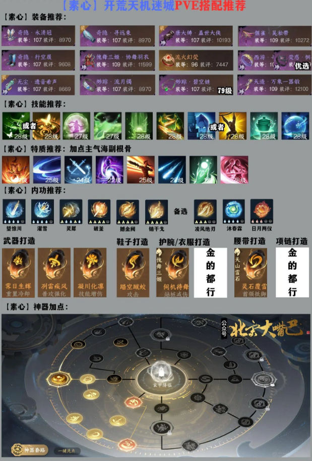 戒指:「西游·寻仙戒」+橙戒/「荧惑·惘年梦呓戒」,带橙戒本内上限更高若干,天机外城带橙戒就够,外城命中有2300够用,木桩和内城才务必2700+命中。