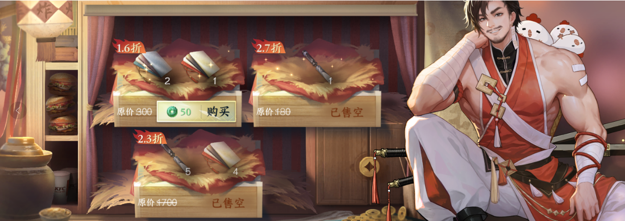 9)「周年侠衣惠」最后1天,稳赚不亏的投资,花费480纹玉获得4张专属促销券,即使没有购买时装,也能够正明天分解促销券。每张保底120纹玉,概率888纹玉。
