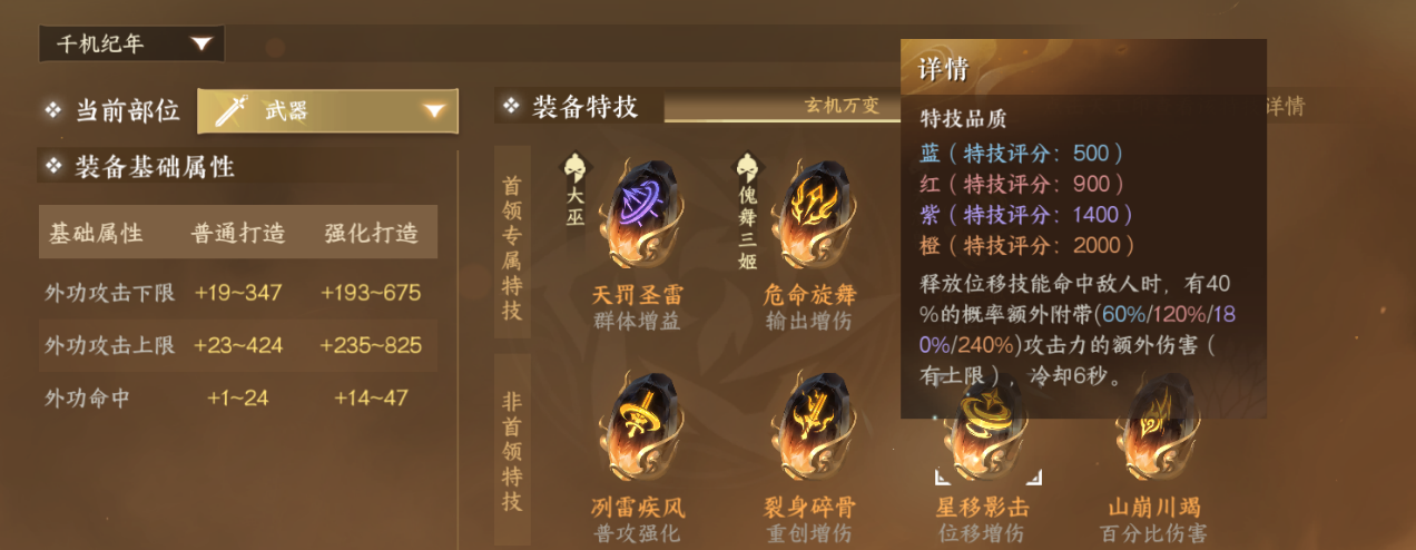 「化物游心」集齐5个千机点自动释放的浮刃并非QTE,再加上鹰掠和赤壁金乌,玄机触发「星移影击」的科技十分简单,覆盖率高,收益拉满。