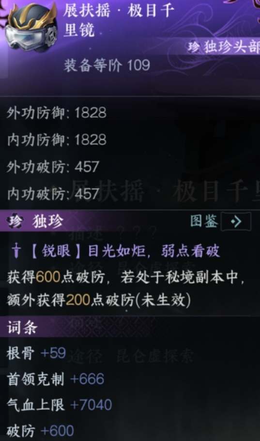 独珍功可以:增加600点破防,处于秘境额外增加200点