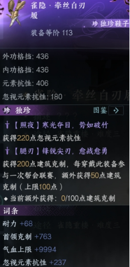 独珍能够以够力:获得220点忽视元素和100点建筑克制
