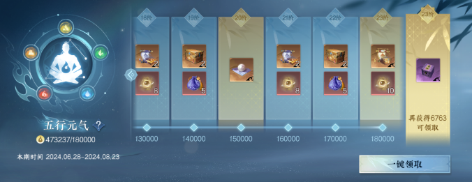 第二期五行元气23号刷新,最快获得进度奖励,获得自选内功/内功幸运丹/转元素丹道具。