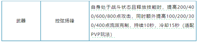 打造特性:自身处于战斗状态且释放方法时,提高800点攻击,同时额外提高400点流派克制,持续10秒,冷却15秒