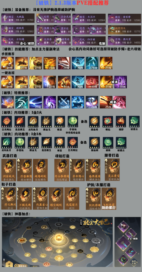 装备建议:防具选择无情护腕/破防护腕+独珍衣服+4件套,首饰选择会心/破防手镯+天演兽/诸葛亮手镯+克制项链,极限破防流可选择2破防手镯+老六项链