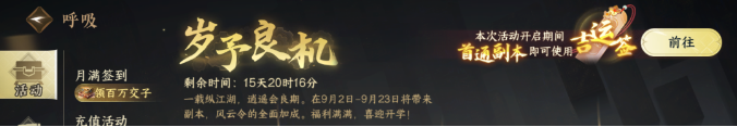 ※务必注意,第三期岁予良机加成事件时刻是:9月2日5:00至9月23日5:00,周一早上5点完毕,缘于此而活动一共只持续3周,和上两期活动周五达成持续4周CD不同。