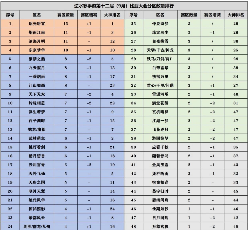 1)除了摇光和2个合区货品器正在增长了一个赛区以外,其余产品器比武大会分线数量不是持平就是减少,还有不少产品器直接减少了2条线路,能够以看得出新赛年玩家流失确实比较严重,每个月比武大会分线数量都在方才减少,玩家热度降低。