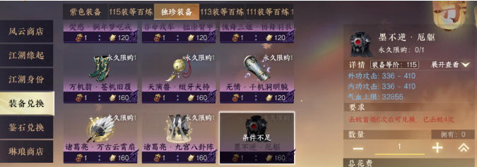 3)风云商店可够根据已有装备状况选择兑换破霄令。9月23日开启115装等百炼兑换,27日后开放独珍兑换,道具·怀珍令可通过“逃逃大作战”等模式赠送获得。