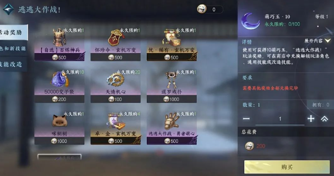 2)额外兑换商店:新装备【逃逃大作战·勇者萌心手】、怀珍令、自选百炼、稀有内功、许多交子等。