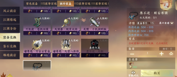 5)115装等PVP/PVE百炼装备明日开启兑换,独珍装备下周五开放兑换,务必100-160破霄令和怀珍令,怀珍令能够够通过“逃逃大作战”、天机迷城史诗挑战等模式无偿获得。风云商店能根据早已有装备问题选择兑换破霄令。